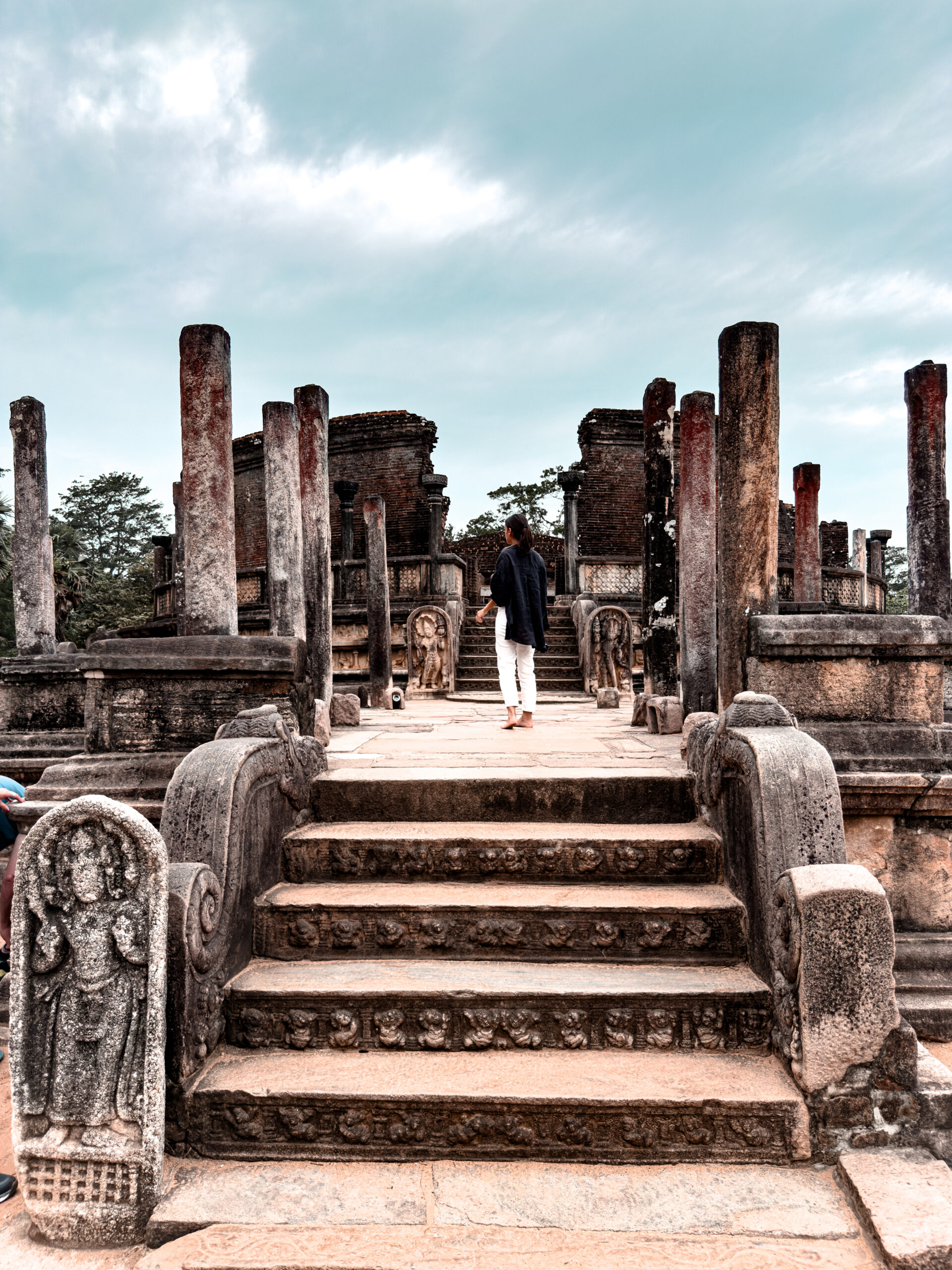 Was Polonnaruwa besonders macht? Die Stadt ist wunderbar kompakt und entspannt, sodass du ganz in Ruhe durch die Geschichte rollen kannst – und das Gefühl hast, sie flüstert dir ihre Geheimnisse zu. Das Highlight hier: die großen Buddha-Statuen von Gal Vihara, die aus einem Felsblock gehauen wurden. Wenn man genau hinschaut, sieht man, wie sich die Linien sanft durch die Statuen ziehen. Ein richtiges Meisterwerk!