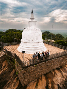 Tipp: Lass dich mit dem Tuk Tuk bequem zum unteren Eingang fahren – von dort aus geht’s rund 360 Stufen nach oben. Der Aufstieg lohnt sich doppelt: Oben wartet nicht nur ein heiliger Ort, sondern auch ein absoluter Postkartenblick über Dambulla.
